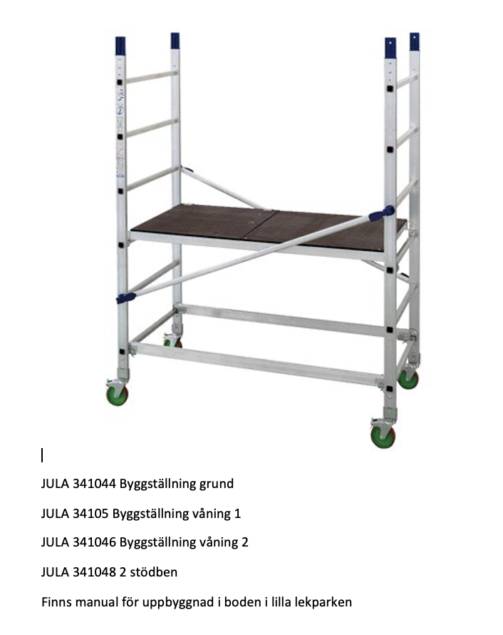 Samfälligheten har ett partytält (3×6 meter) att hyra ut till er medlemmar utan kostnad. Vi har också en byggnadsställning med upp till 7 meters arbetshöjd att hyra ut till er medlemmar utan kostnad.